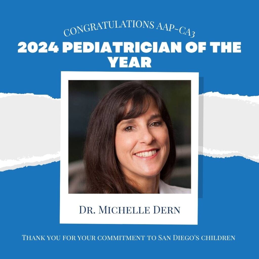 Special Achievement Award for 2023is presented with sincere appreciation to Dr. Michelle Dernfor her many years of outstanding service and contributions to AAP-CA3 Board, as Infectious Disease Committee Chair and the School Health Committee and appreciation for her work on Chapter projects. For her outstanding contributions to the improvement of health and well-being of children, and her commitment, dedication, and advocacy to pediatrics, teens, children, and families.