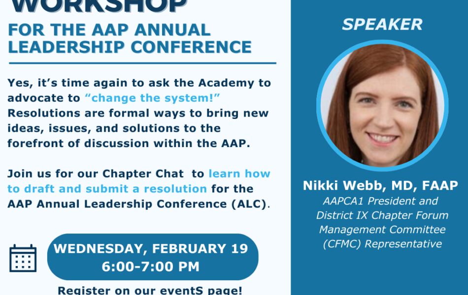 Join us for a workshop on drafting and submitting resolutions for the AAP Annual Leadership Conference (ALC). Resolutions are a formal way to introduce new ideas, address critical issues, and advocate for system-wide change within the AAP at the Chapter, District, and National levels.